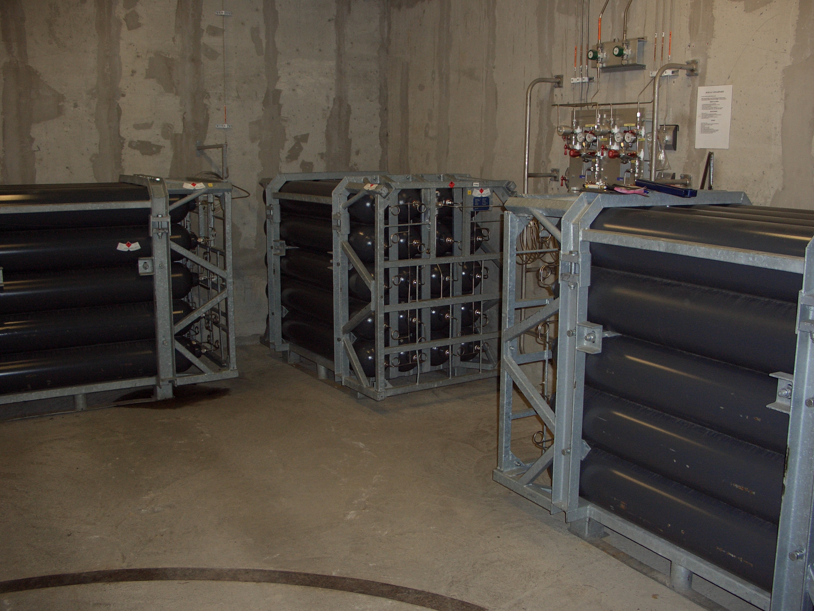Storage and distribution central for Hydrogen. The Hydrogen is distributed to point-of-use places in the clean room |