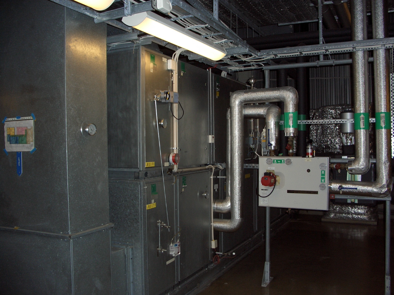 The ventilation system above the clean room distributes air to the clean room with a controlled temperature and humidity.