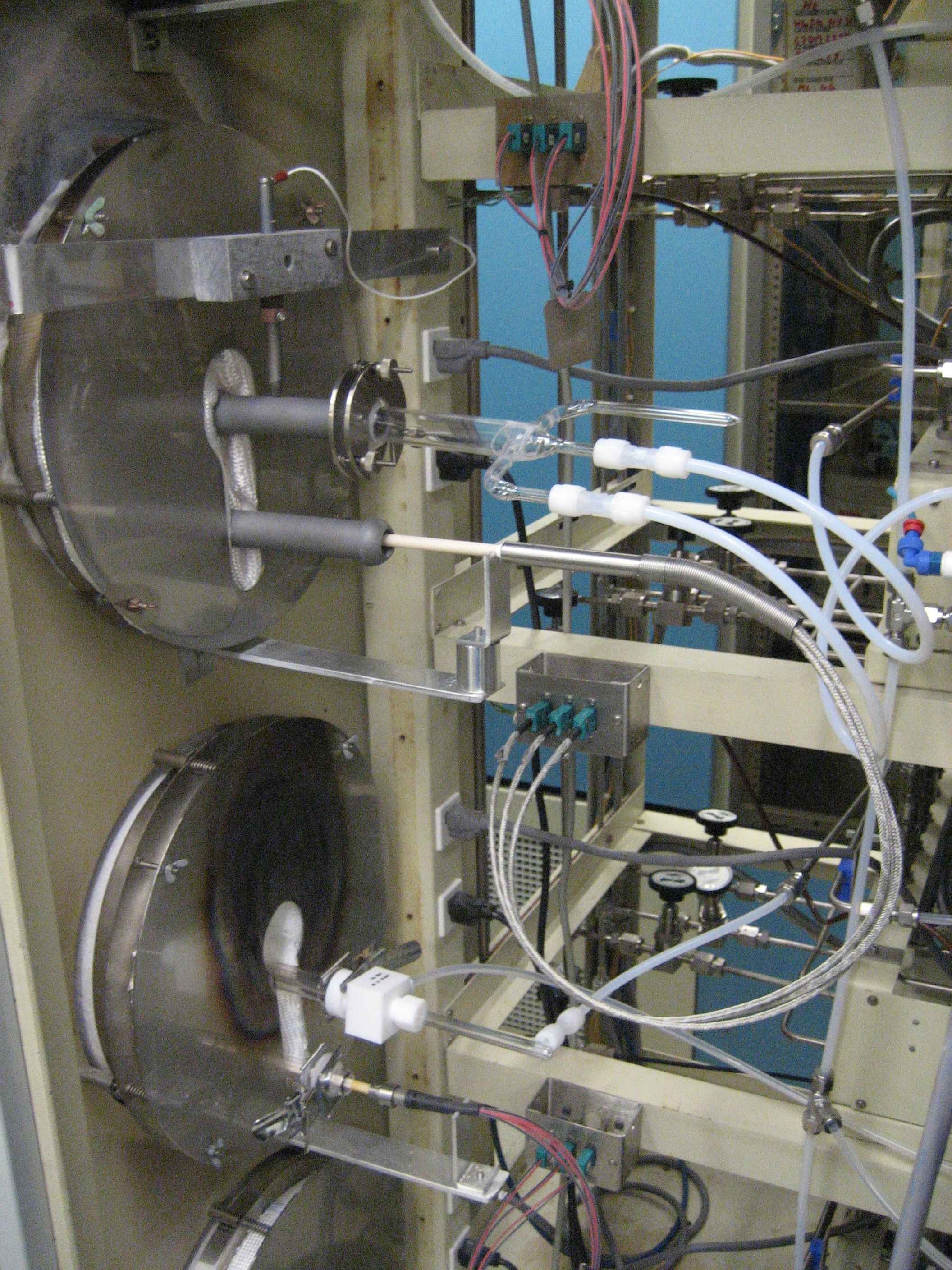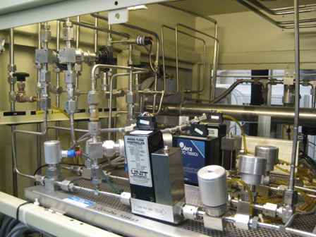 This is the furnace room service. Here the main part of the equipment is situated with hook-up to gases, pumps and facility. Some gas cabinets can be found here, but all pumps are actually in the basement. |